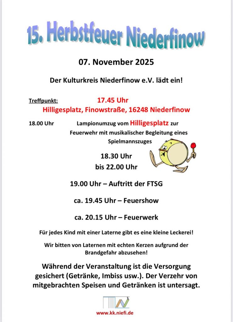 Hier finden Sie Veranstaltungen, bei denen der Kulturkreis Niederfinow e.V. mitwirkt oder sie selbst veranstaltet.